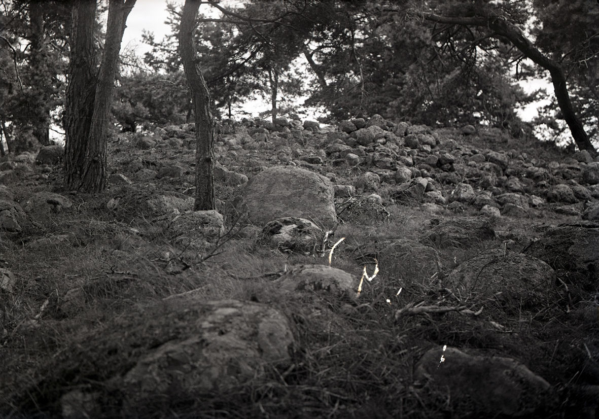 Ett röse, möjligen en grav, på en höjd.