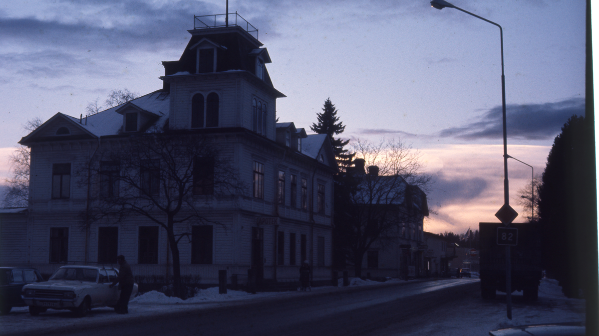 Bebyggelse i Alfta centrum. Apoteket i bild.