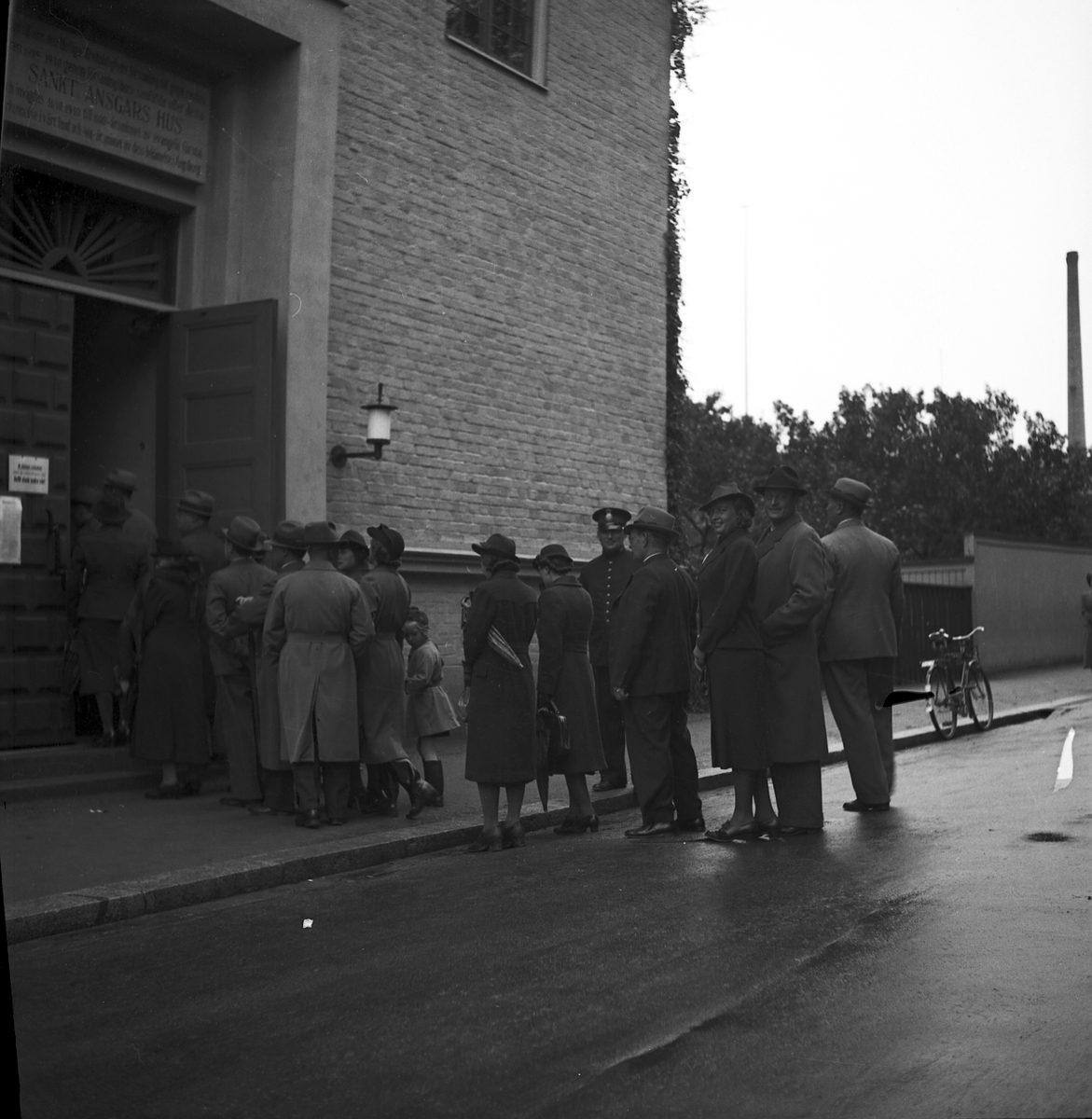 Reportage för Gefle Dagblad. Stadsfullmäktigeval 1938 i Sankt Ansgars hus