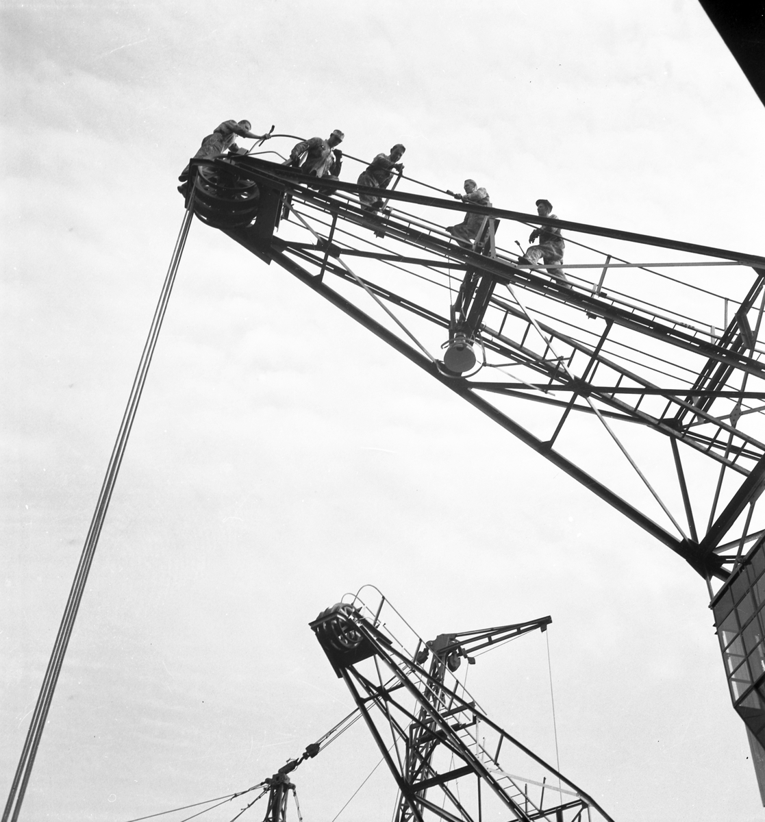 Målarmästare Östlund, målning av kranar. Juni 1937