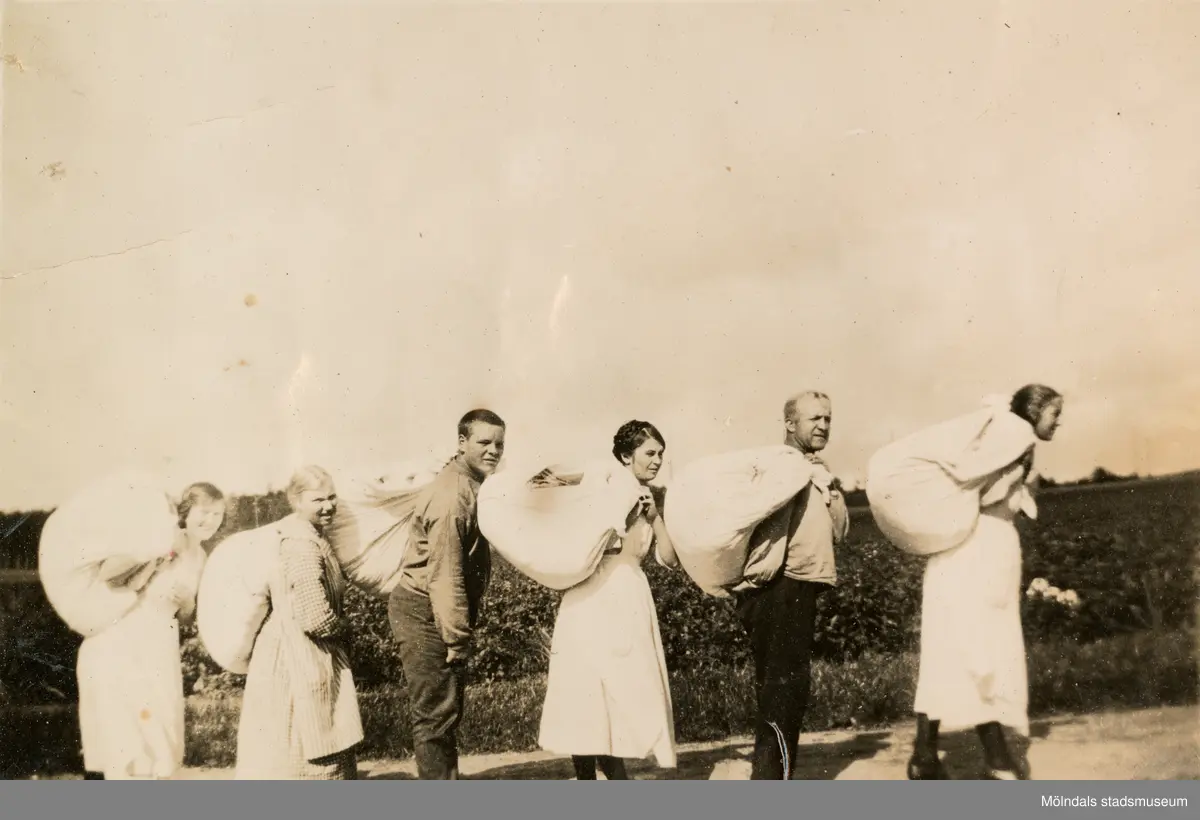 Personal och elever från Stretereds vårdhem är på väg till Kållered-Tvätten på Streteredsvägen 36 B cirka 1924.