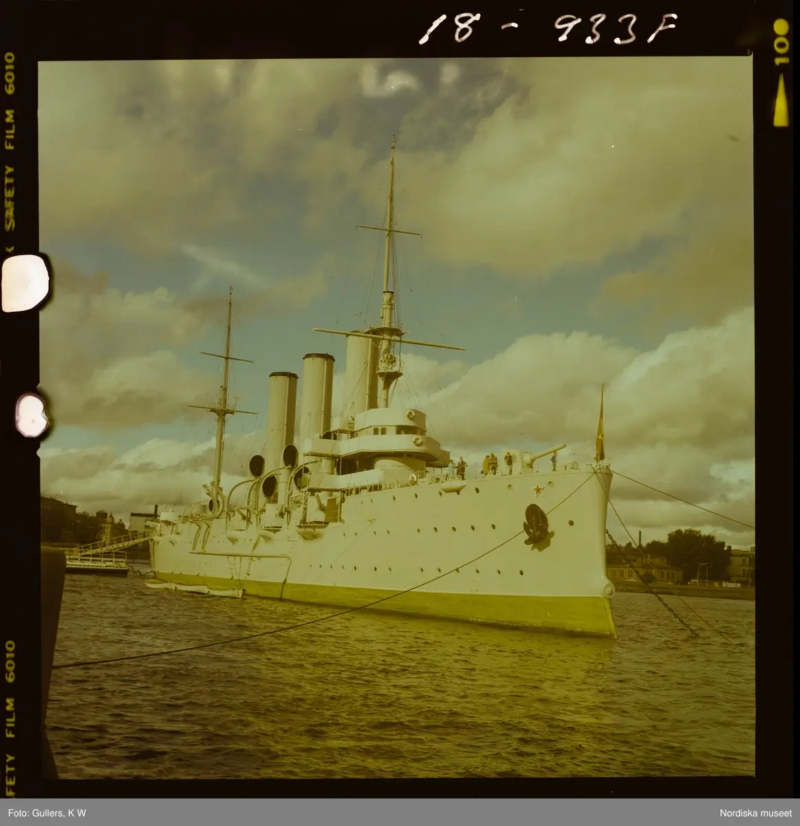 Titel: 2783/4 Sovjetunionen Pansarskeppet "Aurora" i Leningrads hamn. Fotograferad av O. Pietinen åt Gustav Huhn för Know How.