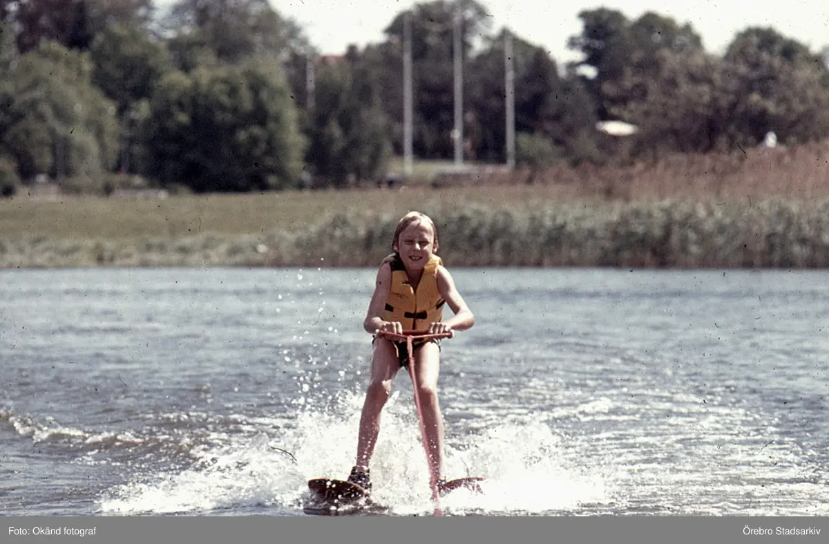 Pojke på vattenskidor i Hjälmarbaden, 1960-tal