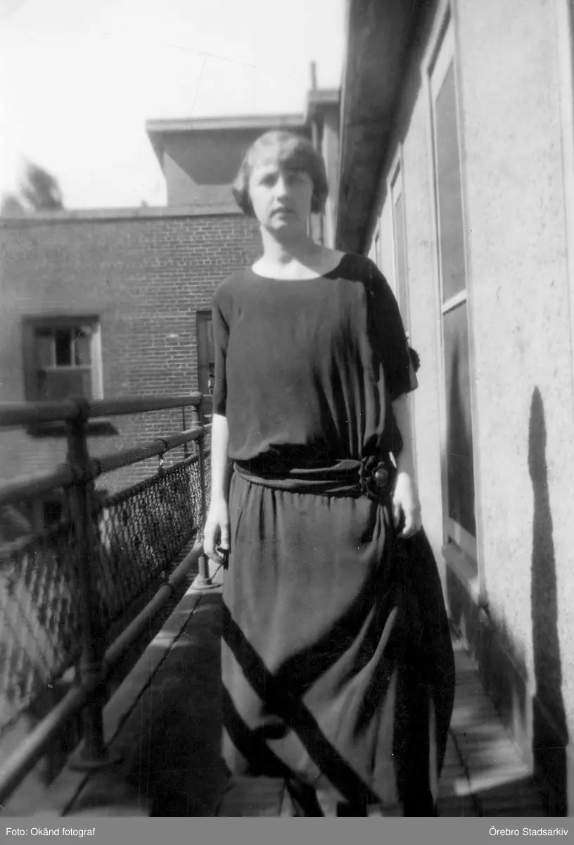 Ung kvinna på balkong i Brockton i USA, 1920-tal