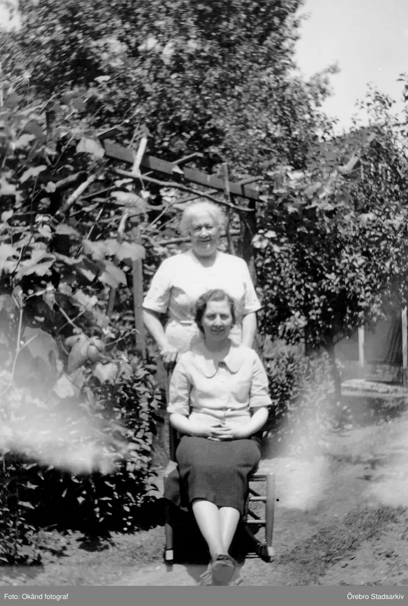 Två kvinnor i trädgården i Brockton i USA, 1930-tal