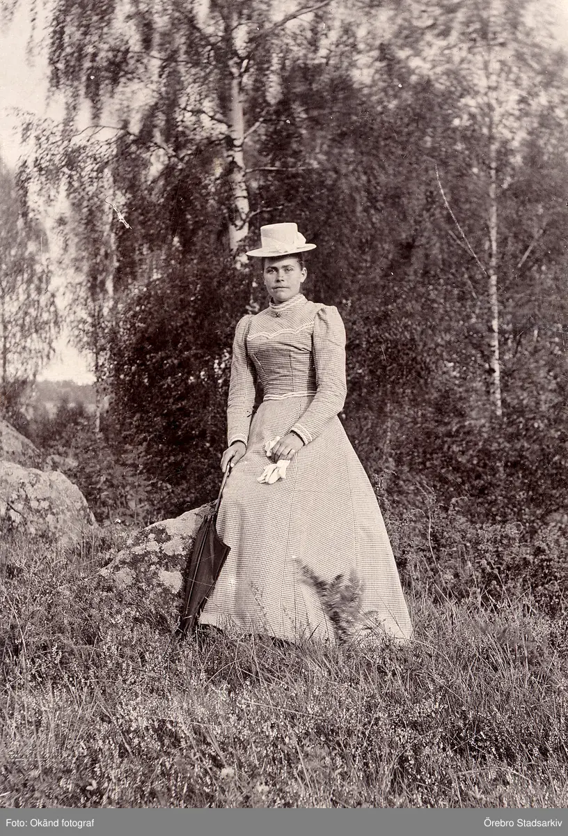 Lovisa Larsson i skogsdunge i Yxtabacken i Hovsta, ca 1900