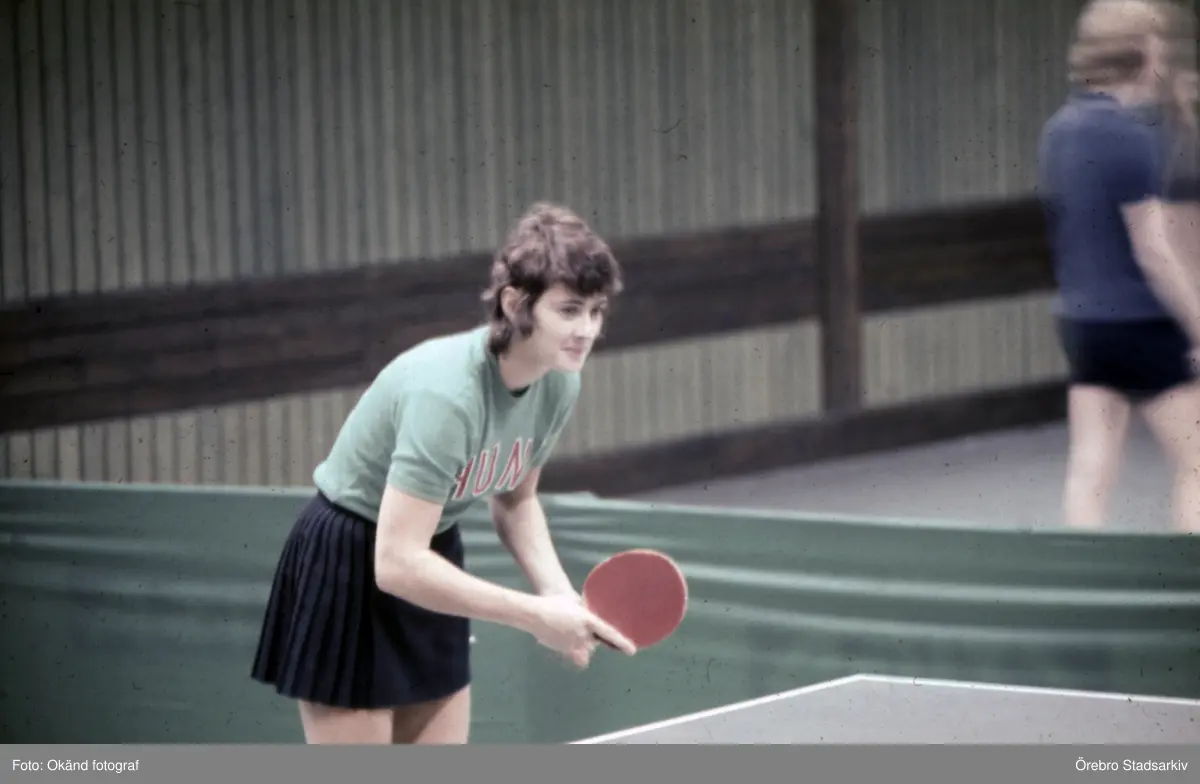 Deltagare i bordtennismatch i Idrottshuset, 1970-tal
