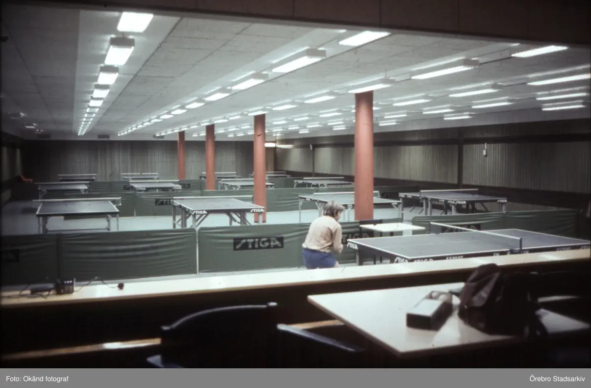 Träningslokal för bordtennis i idrottshuset, 1970-tal