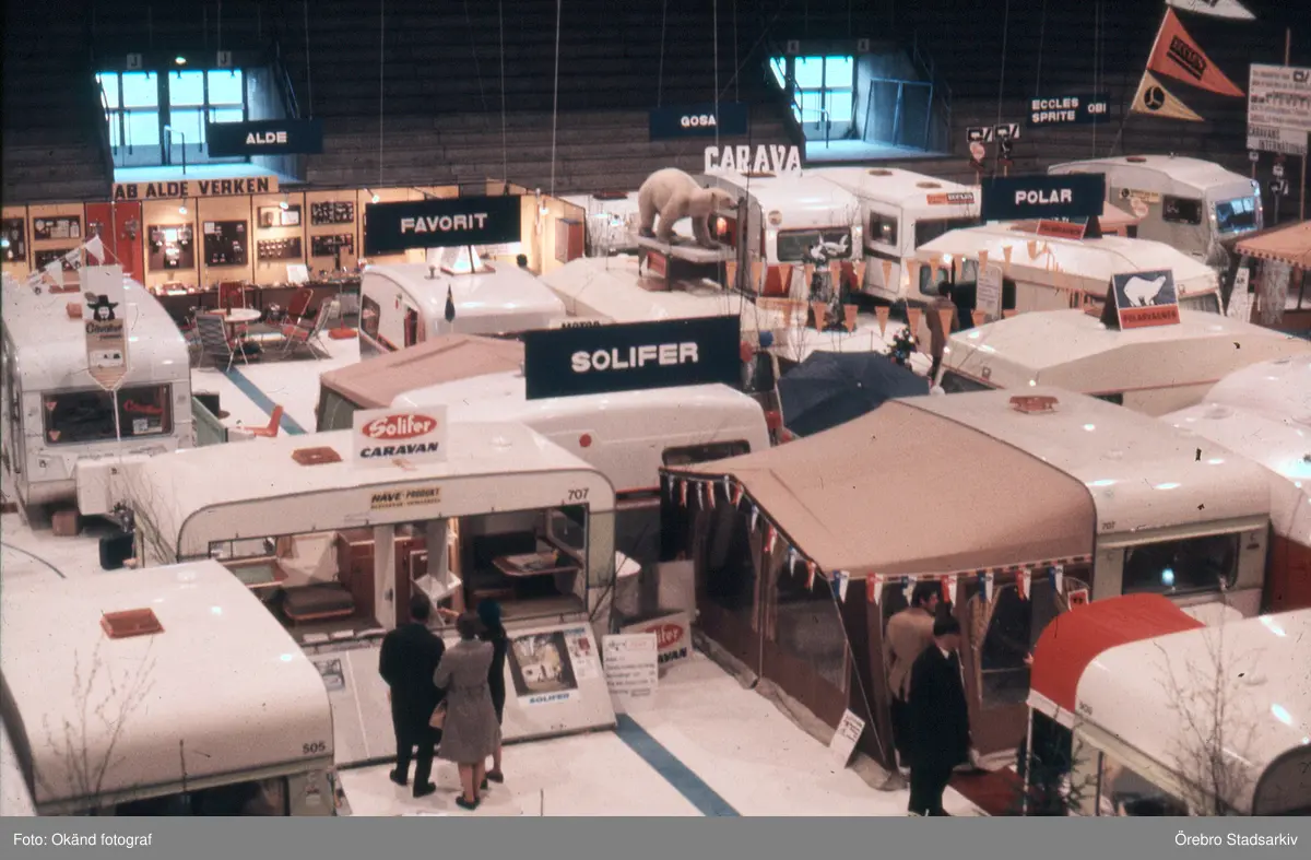 Besökare på husvagnsutställning på Eyravallen, 1970-tal