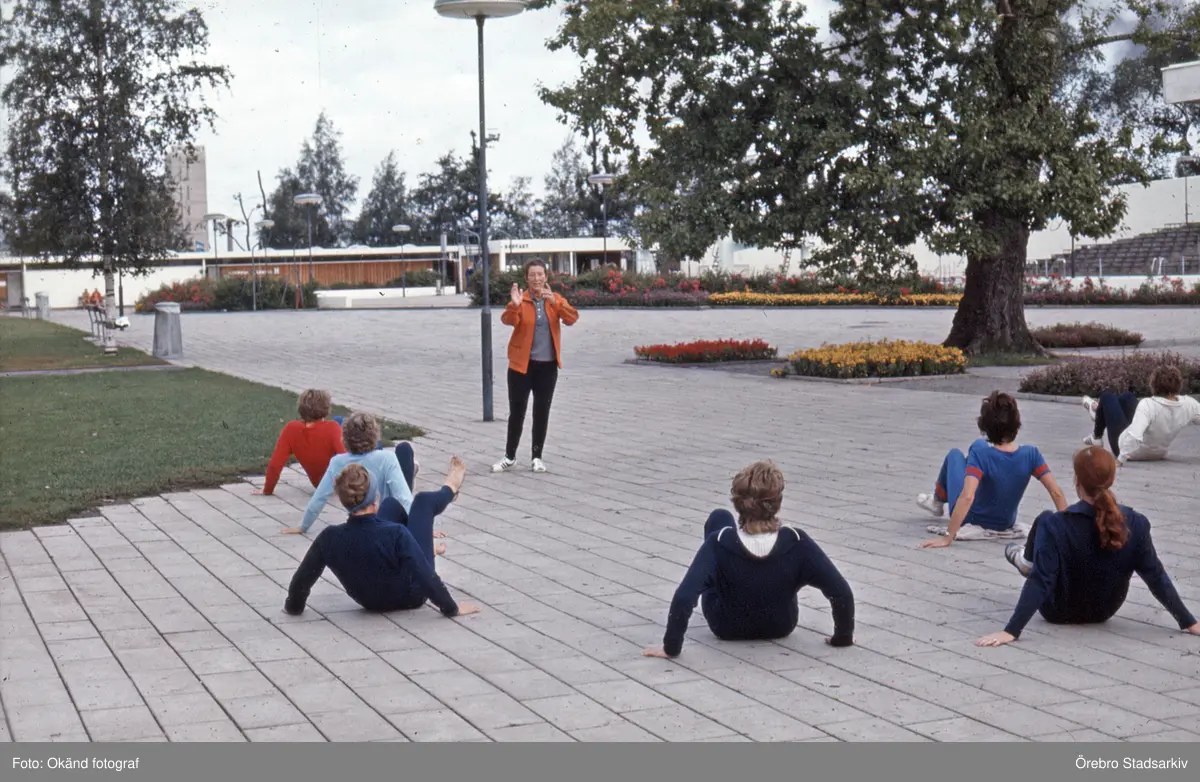 Uppvärmning inför friidrottsskolan på Gustavsvik, 1970-tal