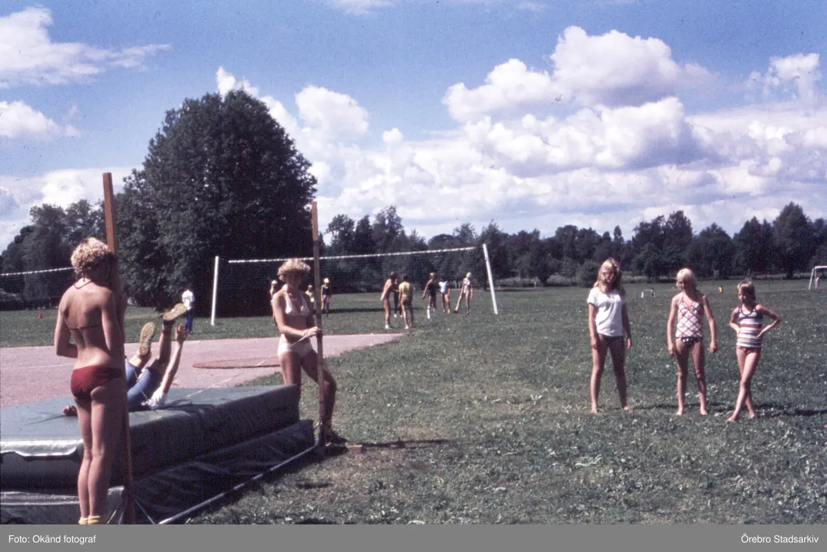 Höjdhoppning och badminton på friidrottsskolan på Gustavsvik, 1970-tal