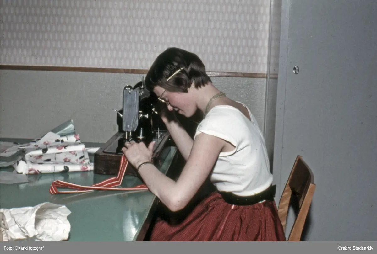 Flicka syr på symaskin på fritidsgården, 1960-tal