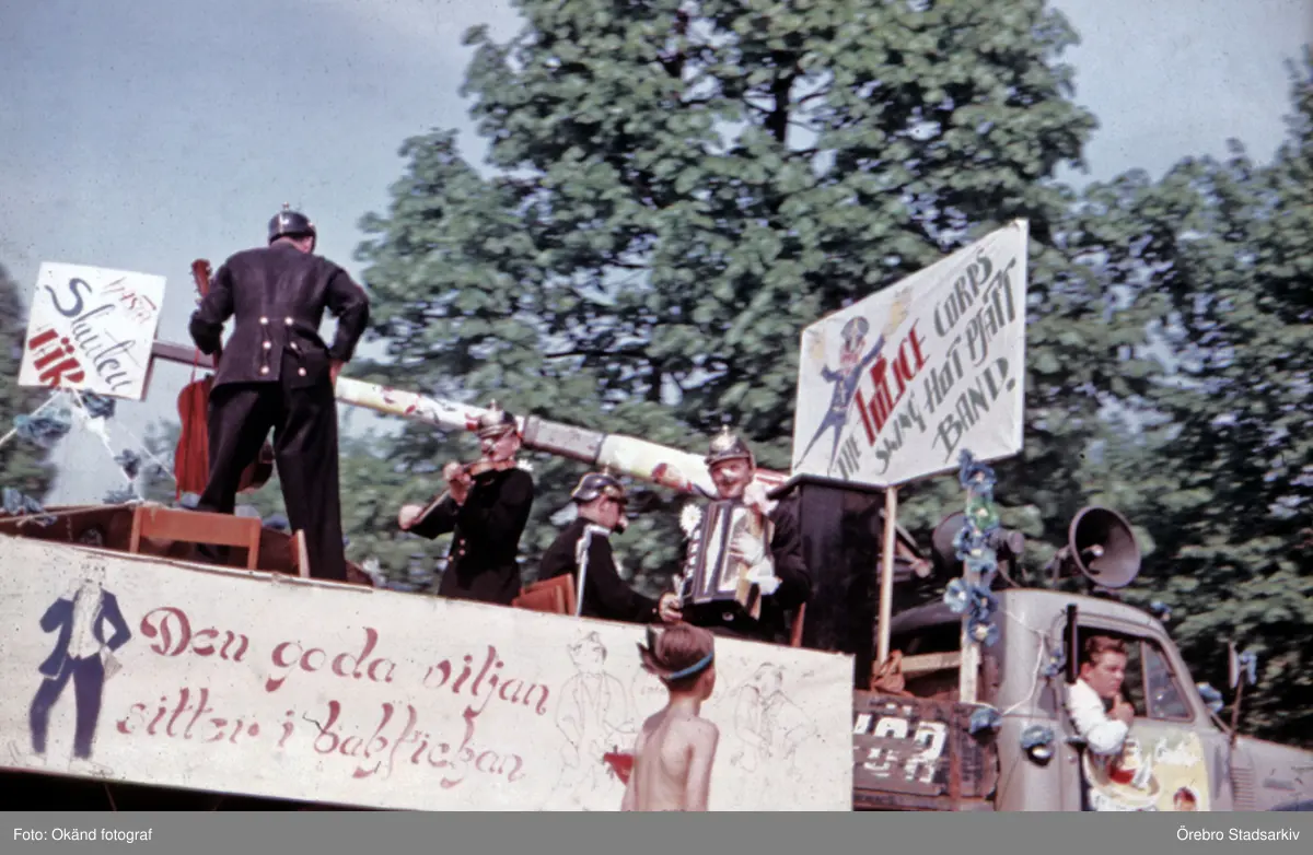Lastbil med poliser på Barnens dag, 1950-tal