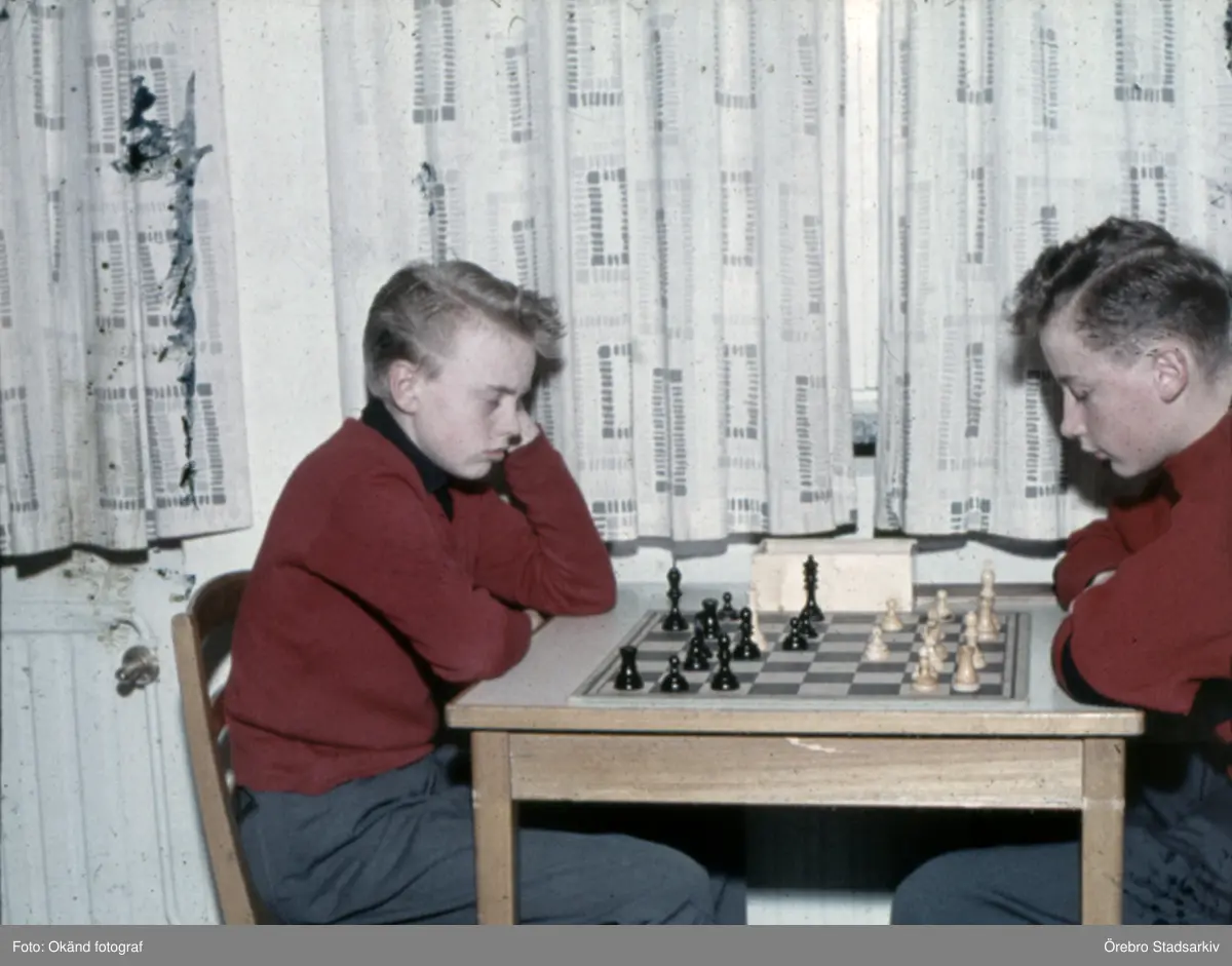 Pojkar spelar schack på fritidsgården, 1960-tal