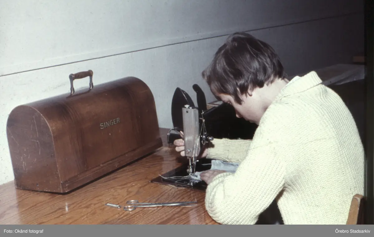 Flicka syr på symaskin på fritidsgården, 1970-tal