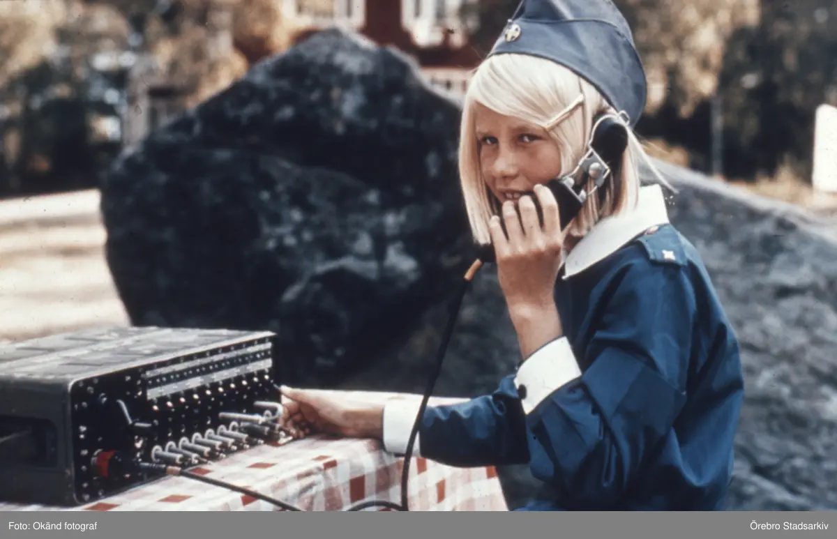 Telefonoperatör vid övning för Röda korset, 1960-tal