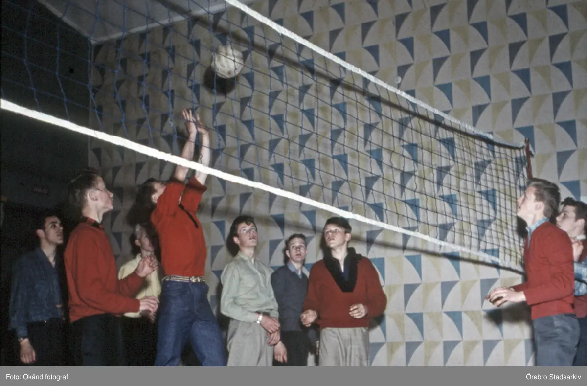 Ungdomar spelar volleyboll på föreningsgård, 1960-tal