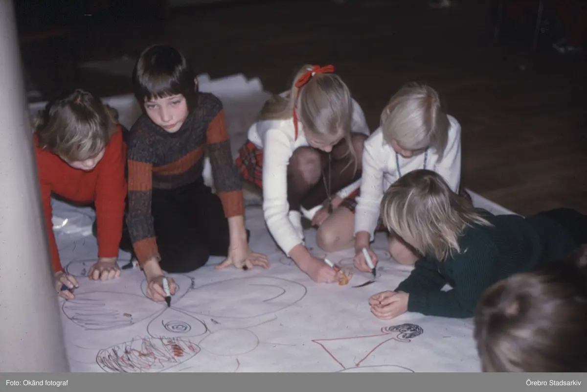 Barn ritar och färglägger på fritidsgården, 1970-tal