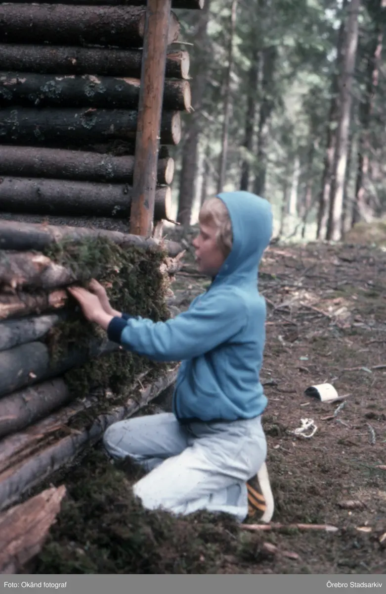 Pojke tätar en koja med ris, 1970-tal