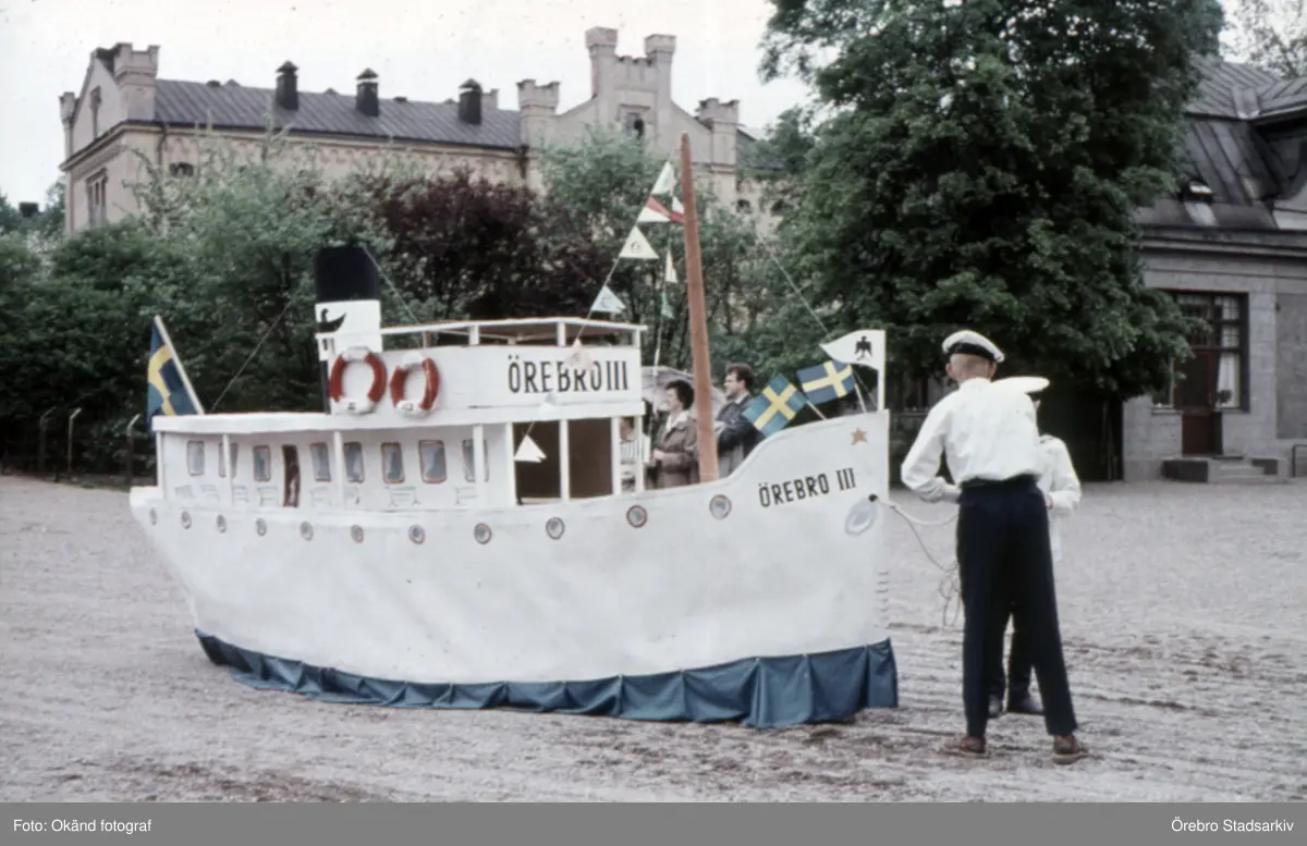 Örebro III redo för sjösättning i Barnens dag-tåget, 1950-tal