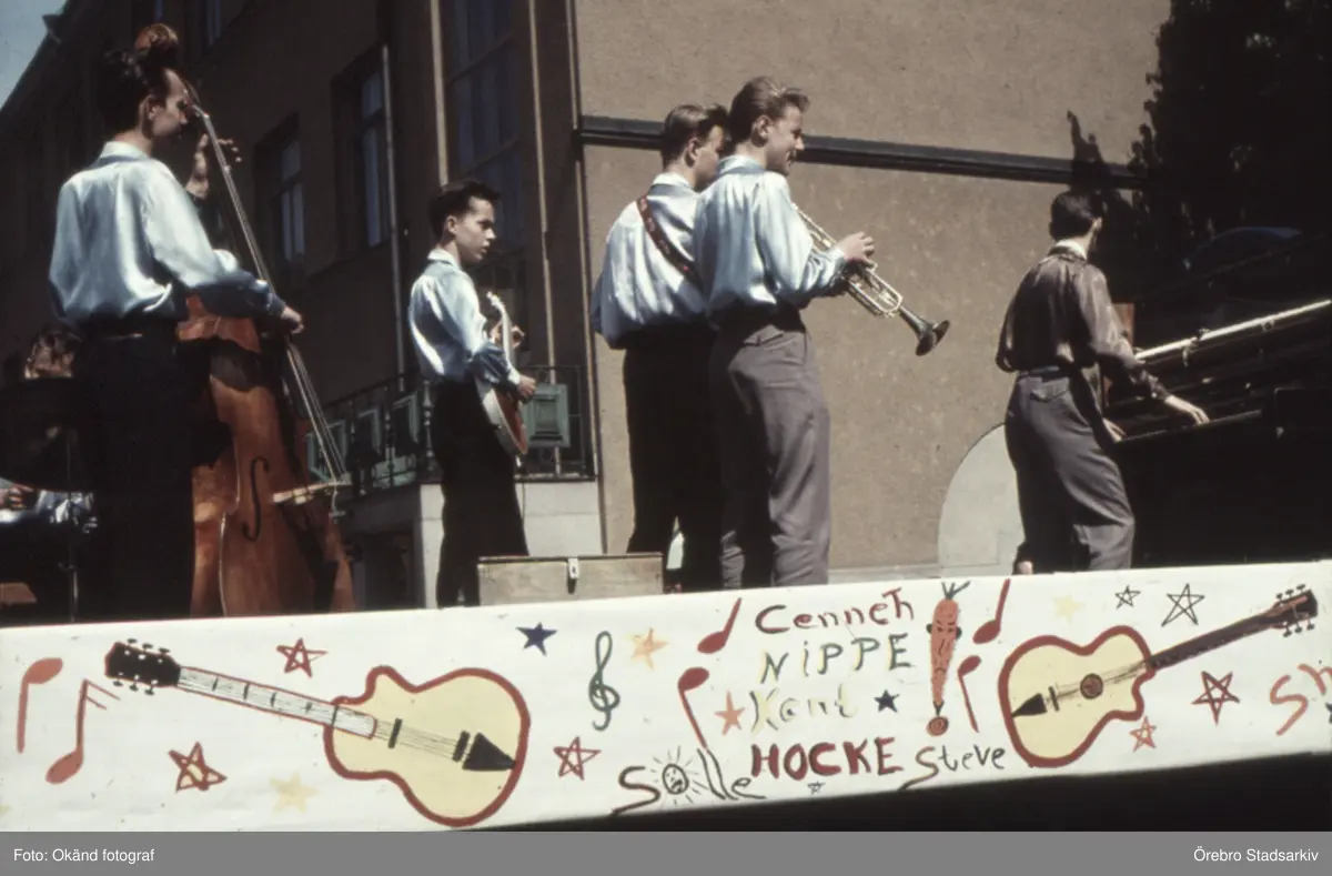 Shoetown rockers spelar på sin vagn i Barnens dag-tåget, 1950-tal