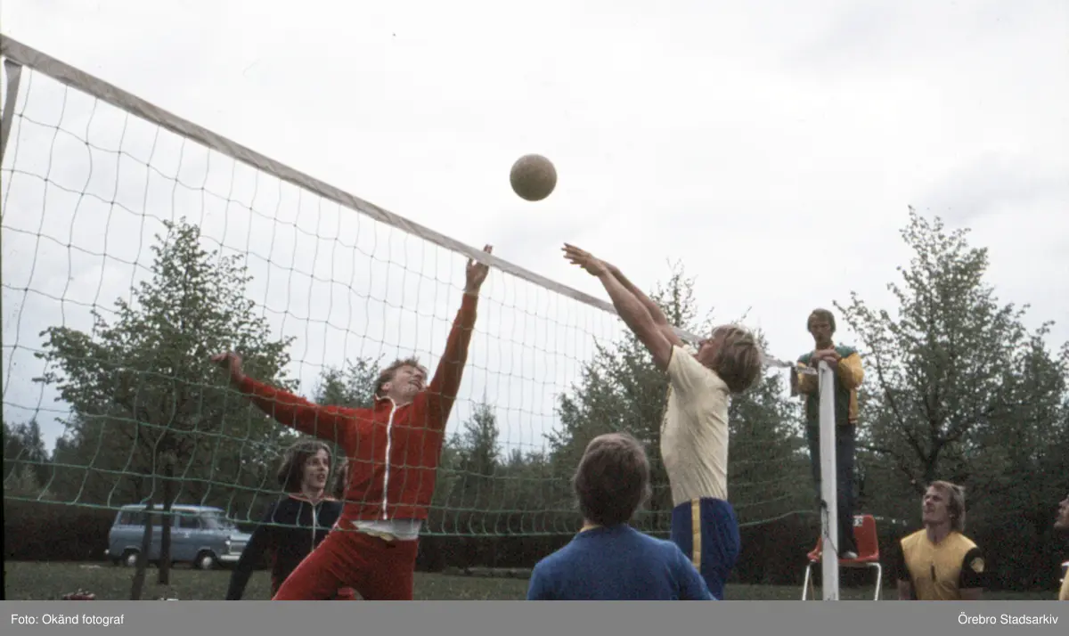 Ungdomar spelar volleyboll utomhus, 1970-tal