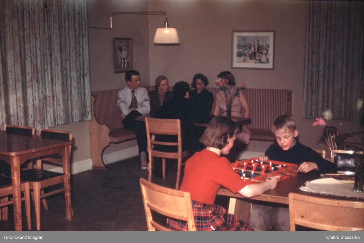 Barn spelar fotbollsspel medan de vuxna talar på fritidsgården, 1970-tal