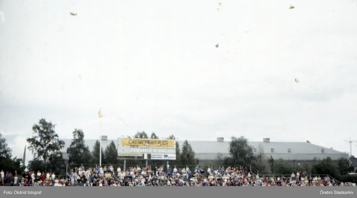 Läktaren fylld vid gymnastikspelen på Eyravallen, 1983