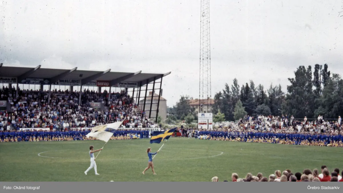Flaggbäare på gymnastikspelen på Eyravallen, 1983