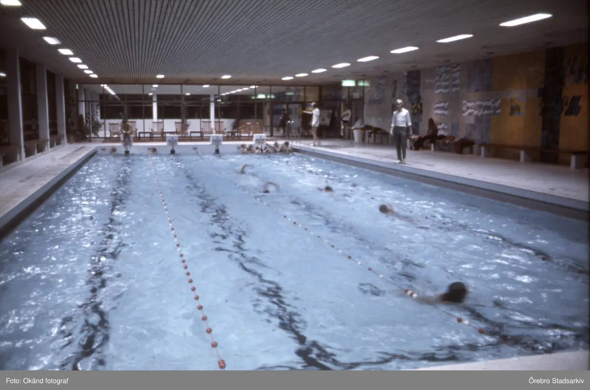 Träning i bassäng i Eyrabadet, 1970-tal