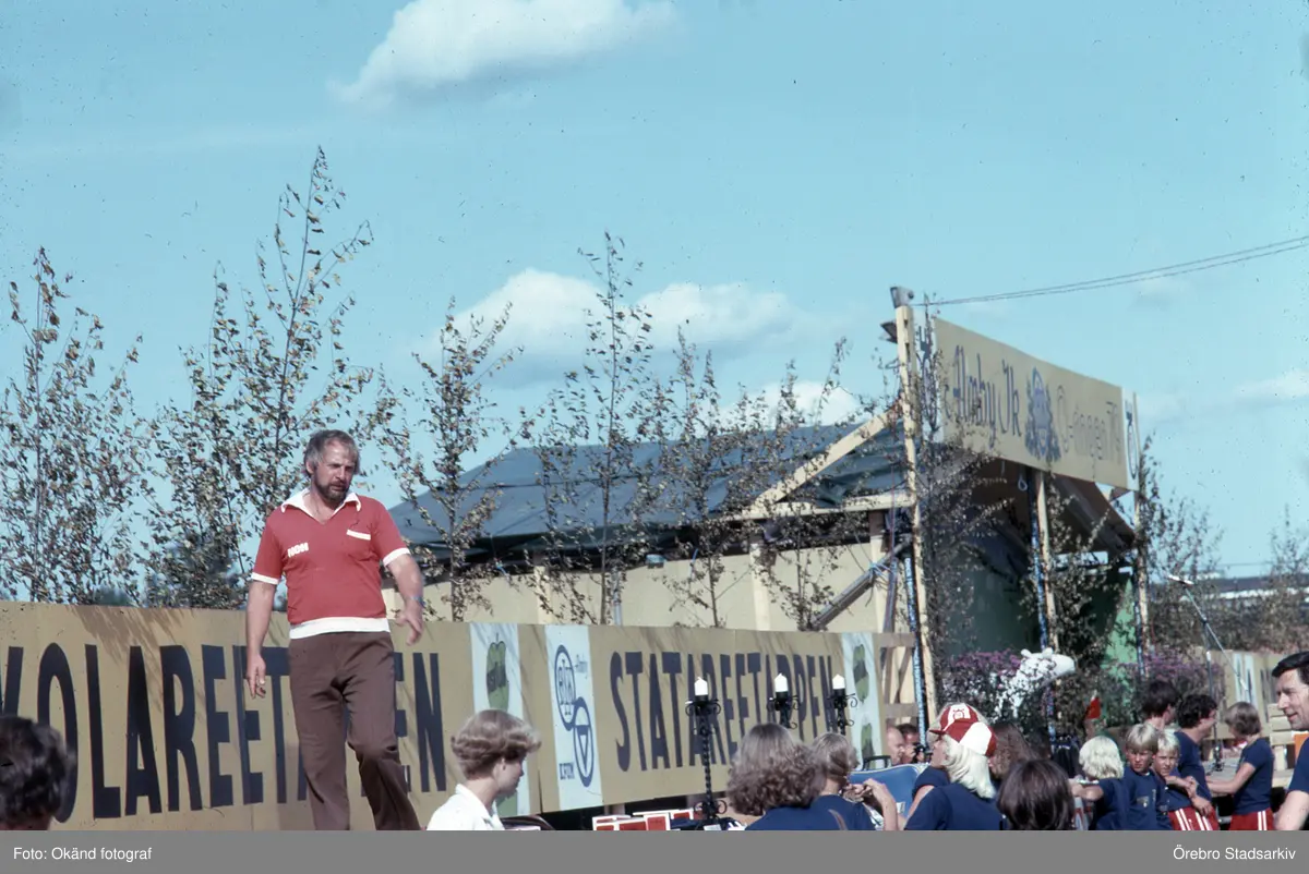 Man observerar informationsbordet vid O-Ringen orientering, 1979