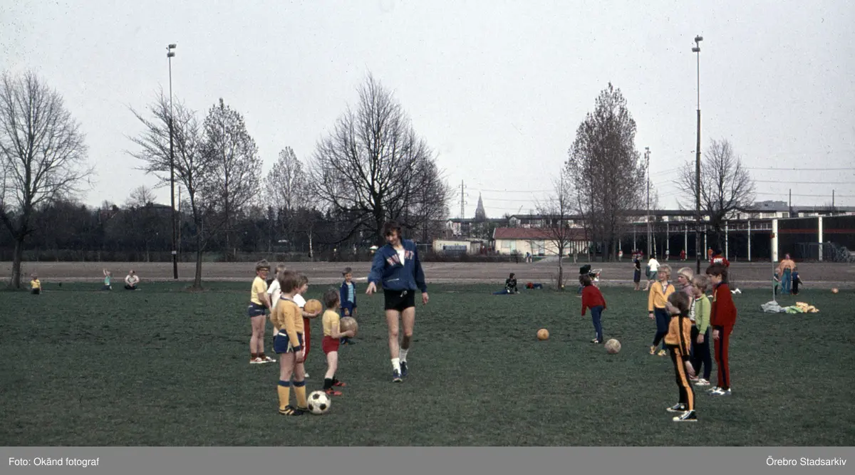 Fotbollsträning för små barn på Trängen, 1970-tal
