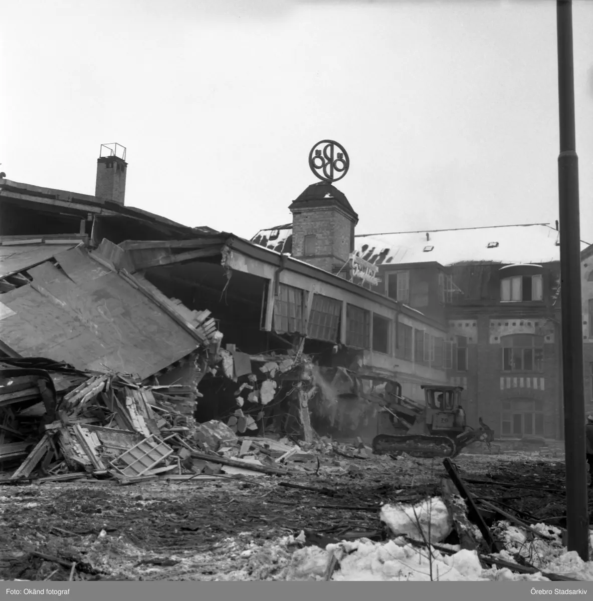 Grävmaskin river fastigheten på Idrottsvägen 14, 1970-tal