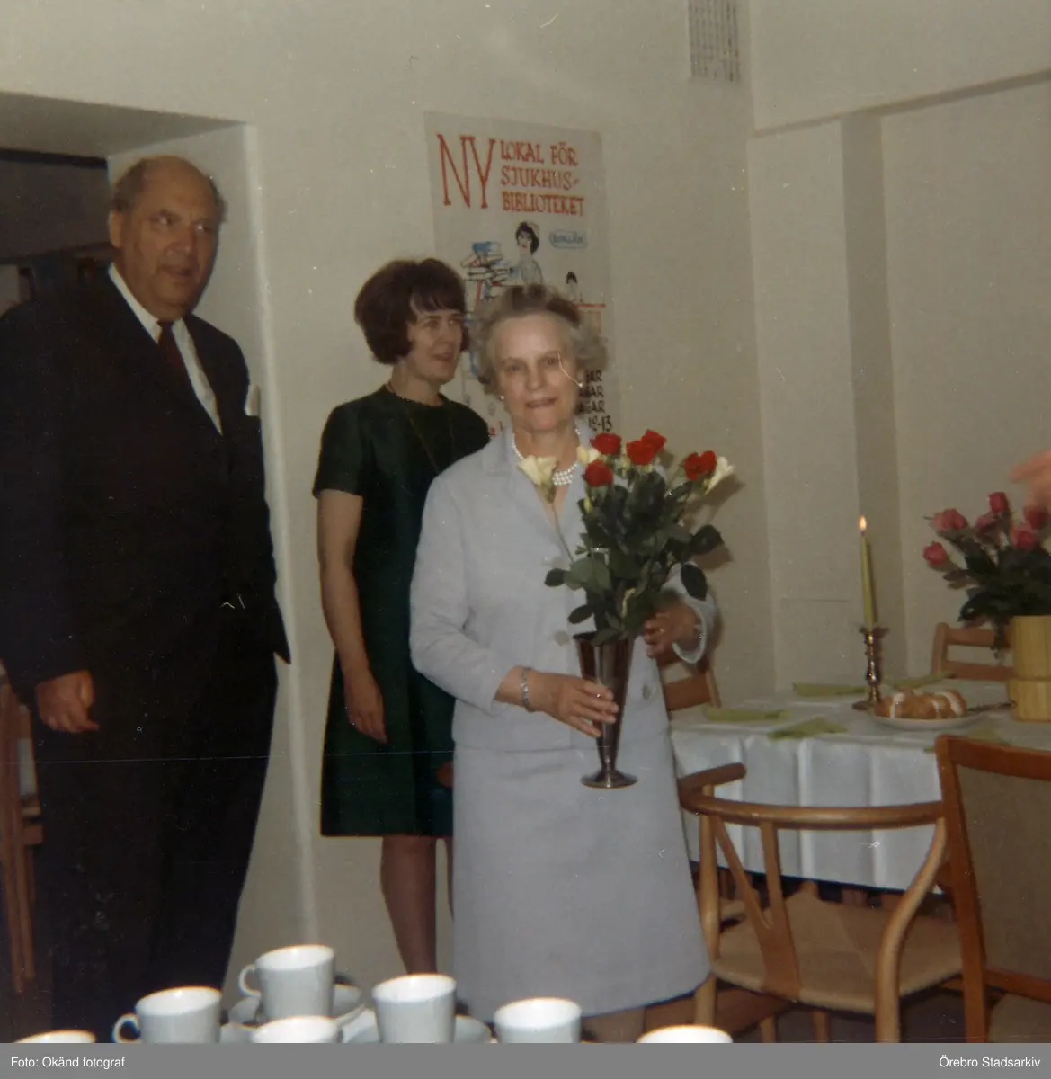 Bibliotekarie blir firad på sin 60 år-dag på Sjukhusbiblioteket, 1970