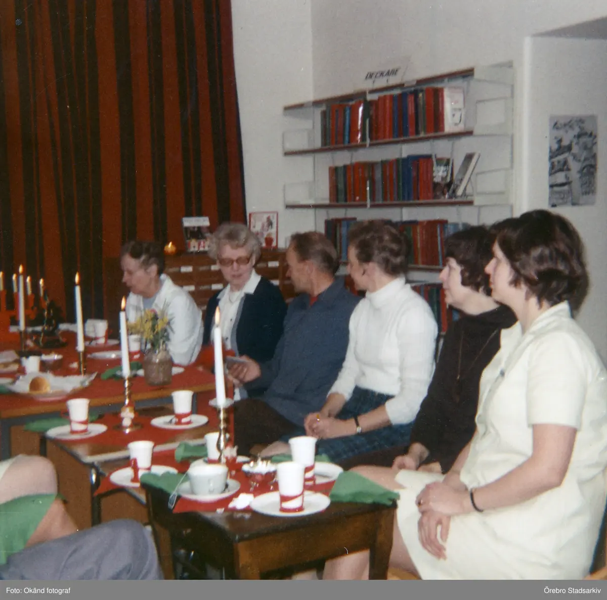 Fika på personalens julfest på sjukhusbiblioteket, 1970