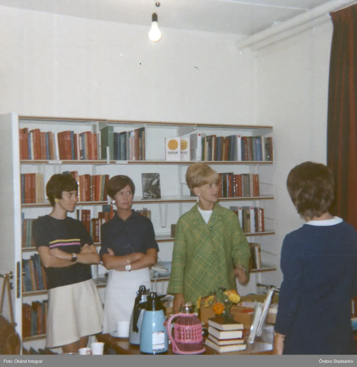 Besökarna beundrar inredningen i nya sjukhusbiblioteket, augusti 1968