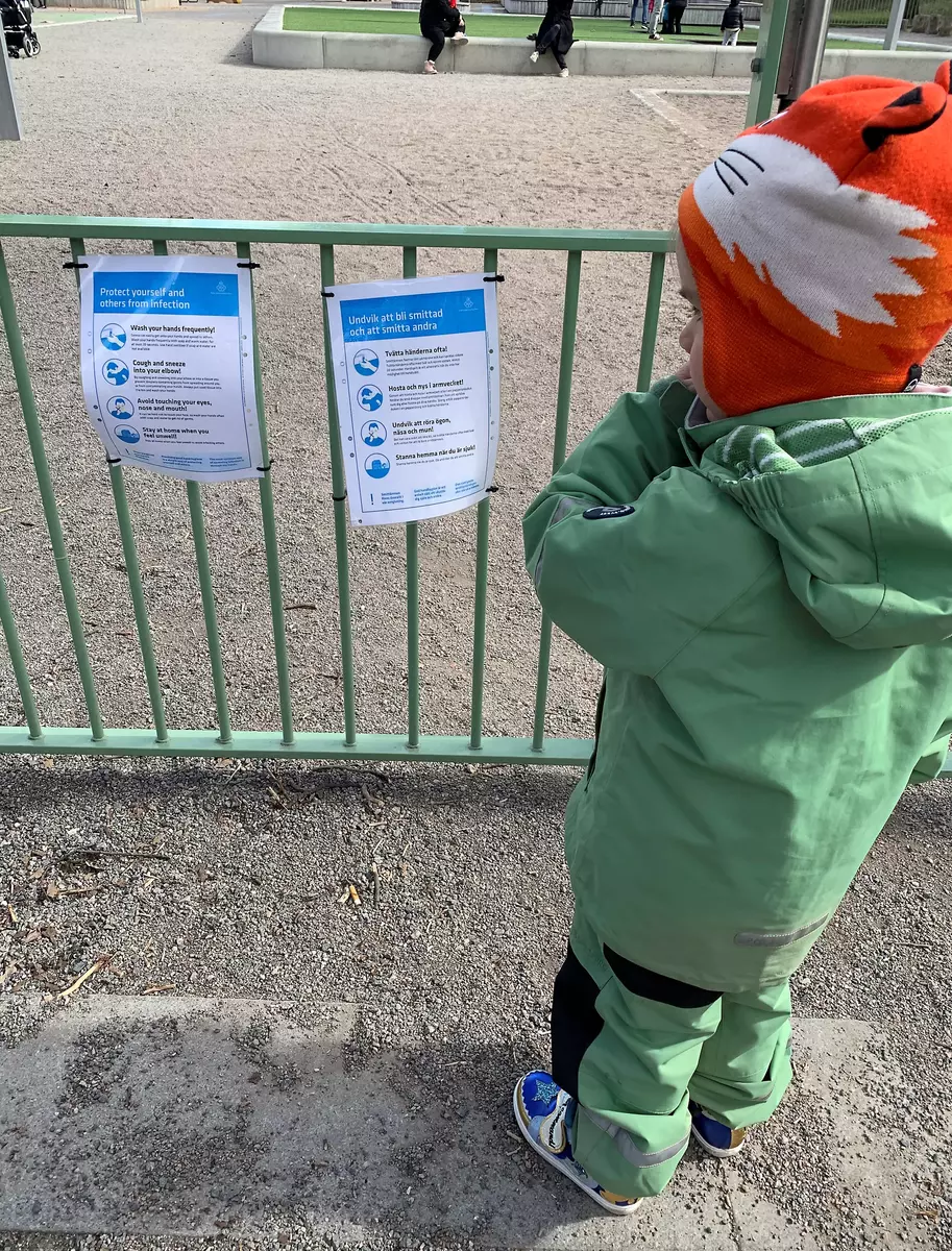 Informationsskylt om Corona.