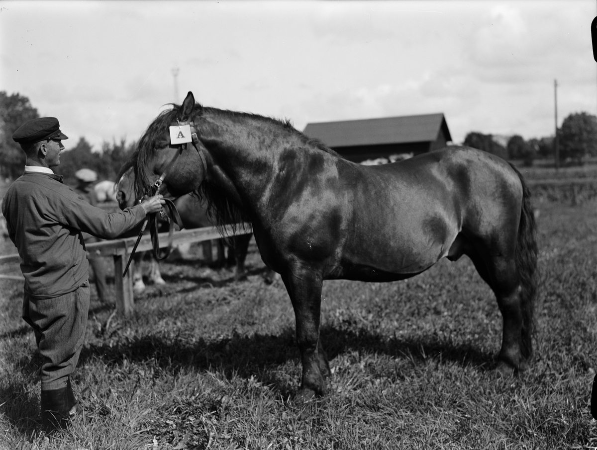Hästpremiering-"A-hingsten Dunker från Funbo prästgård", Kobacken, Kungsängstull, Uppsala augusti 1940