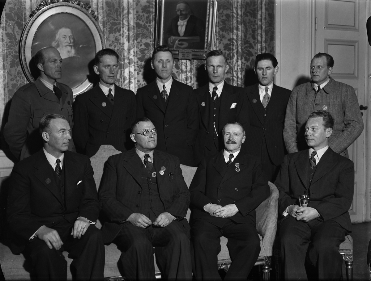 "Jaktvårdsintresset ökar i länet" - "en gruppbild av de belönade", Uppsala Läns Jaktvårdsförenings årsmöte på Norrlands studentnation, Uppsala februari 1943