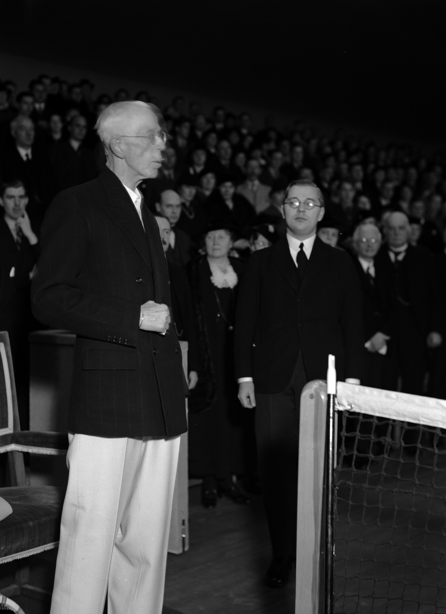 Titel: "Stil, stämning och gemyt präglade invigningen av Upsalastudenternas tennishall", Uppsala 1937