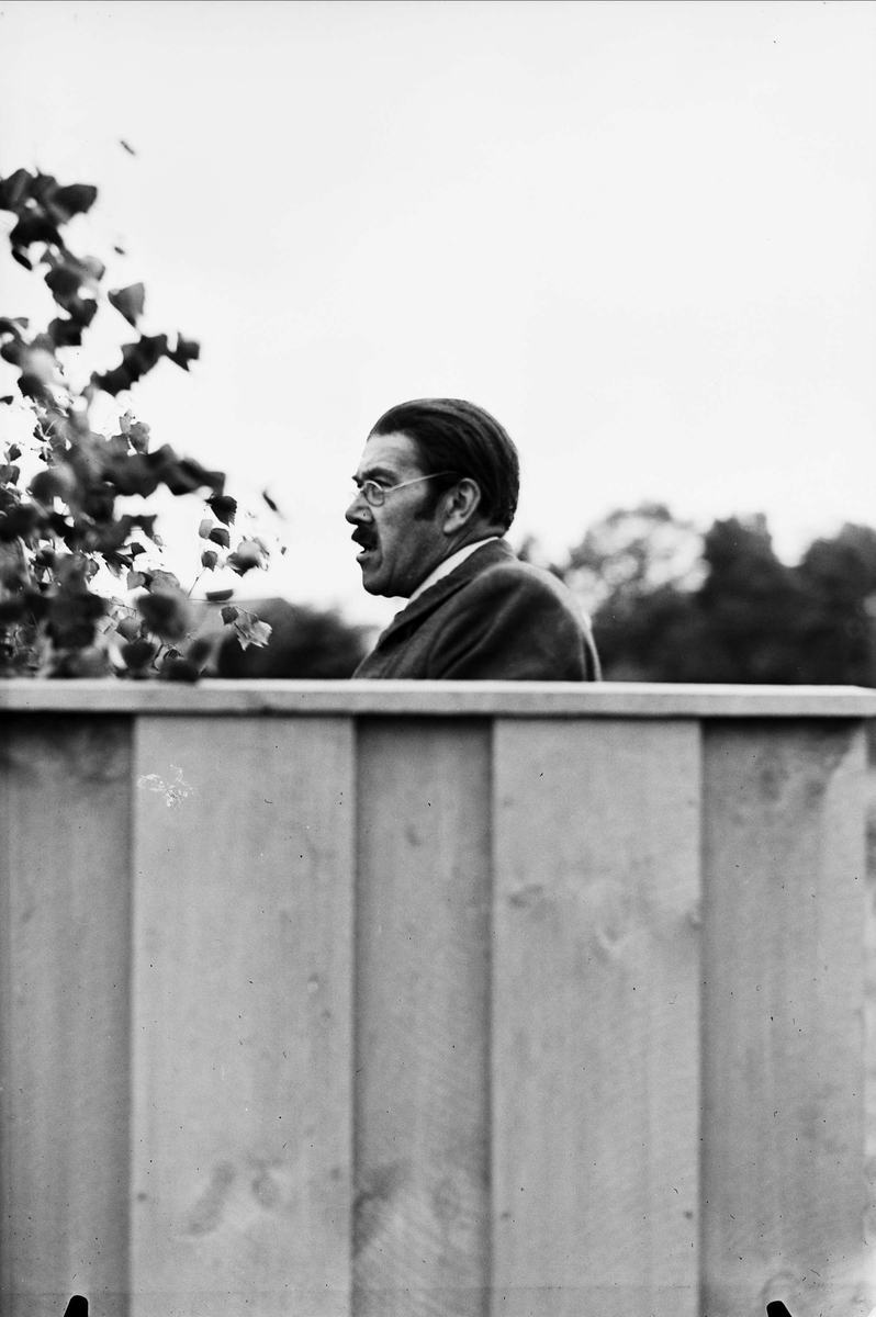 Konstnären och poeten Olof Thunman på friluftsmuseet Disagården, Gamla Uppsala 1933