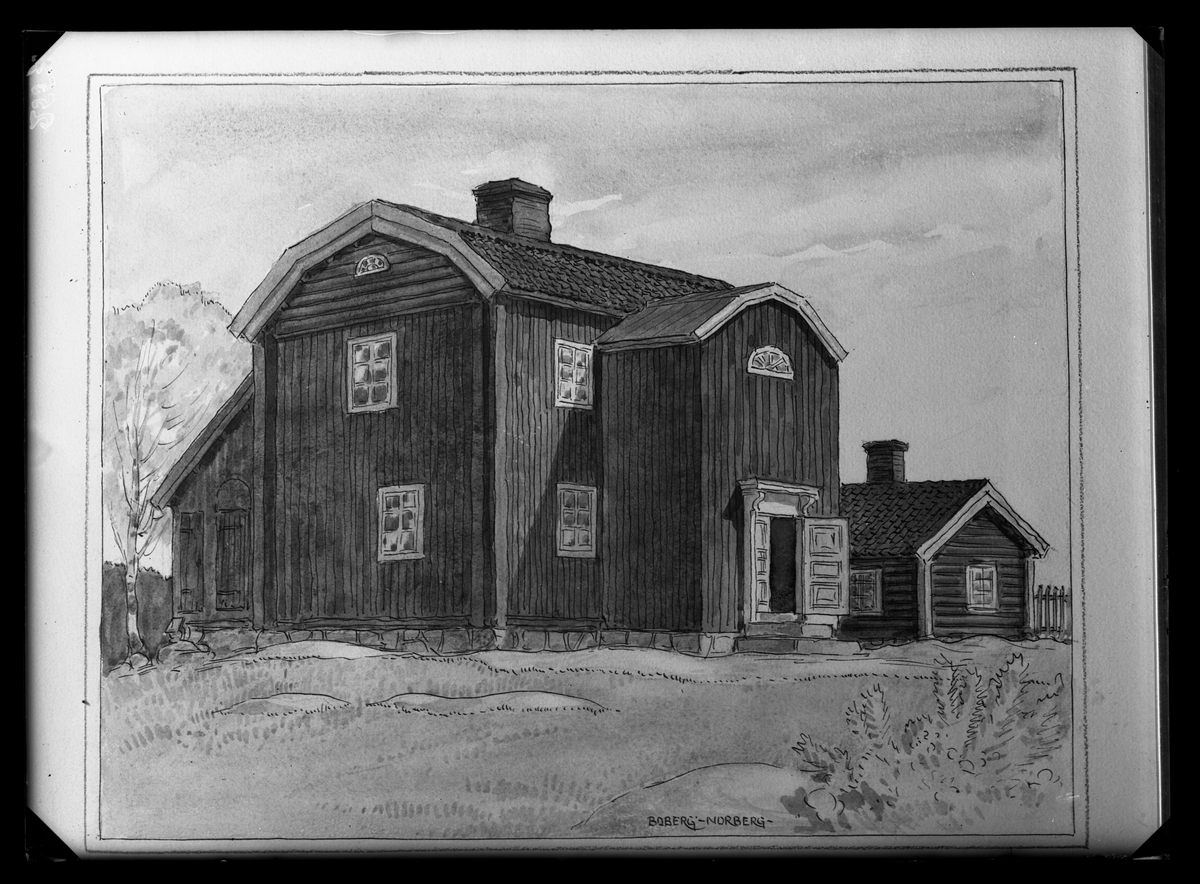 Akvarell av Ferdinand Boberg. Bergsmansgård vid Gyllentäkten, Norberg, Gyllentäckten/Gyllentäkten.