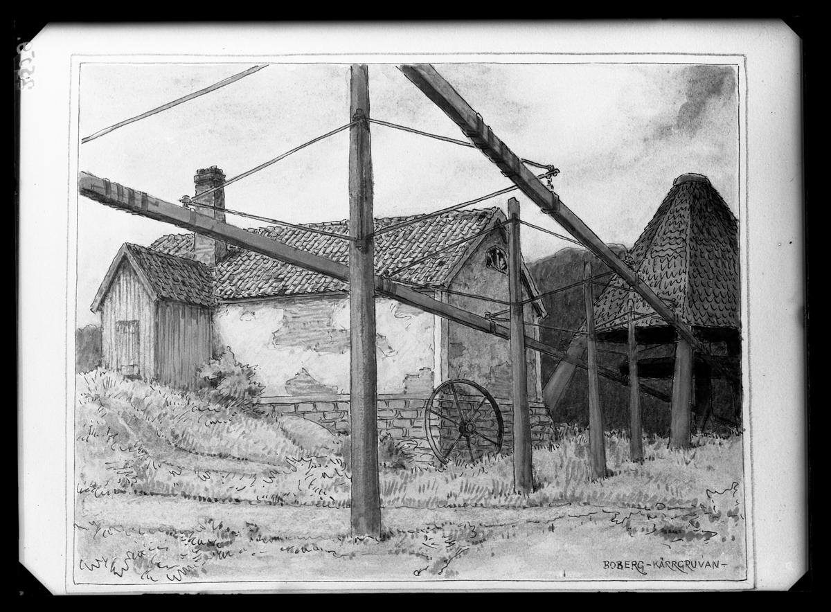 Akvarell av Ferdinand Boberg. Konstgång, Kärrgruvan, Norberg.