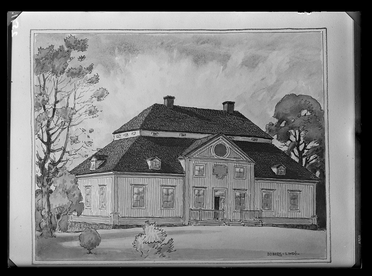 Akvarell av Ferdinand Boberg. Herrgården Lindö, Kärrbo, Västmanland.