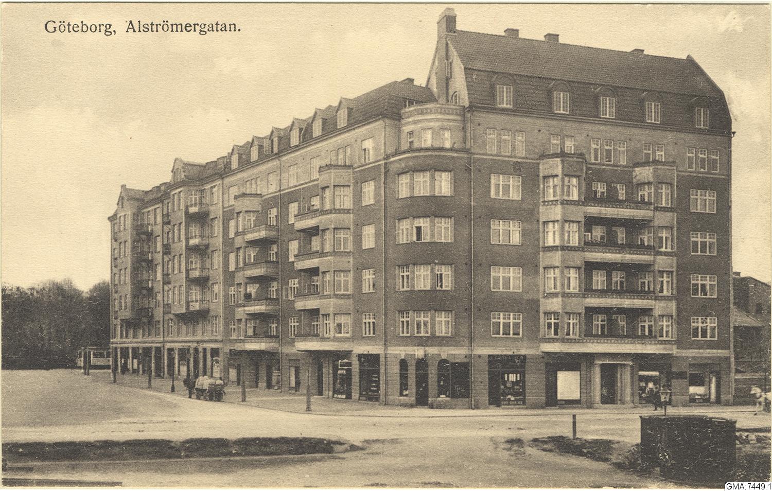 Alströmergatan sedd från Friggagatan, blick mot söder.