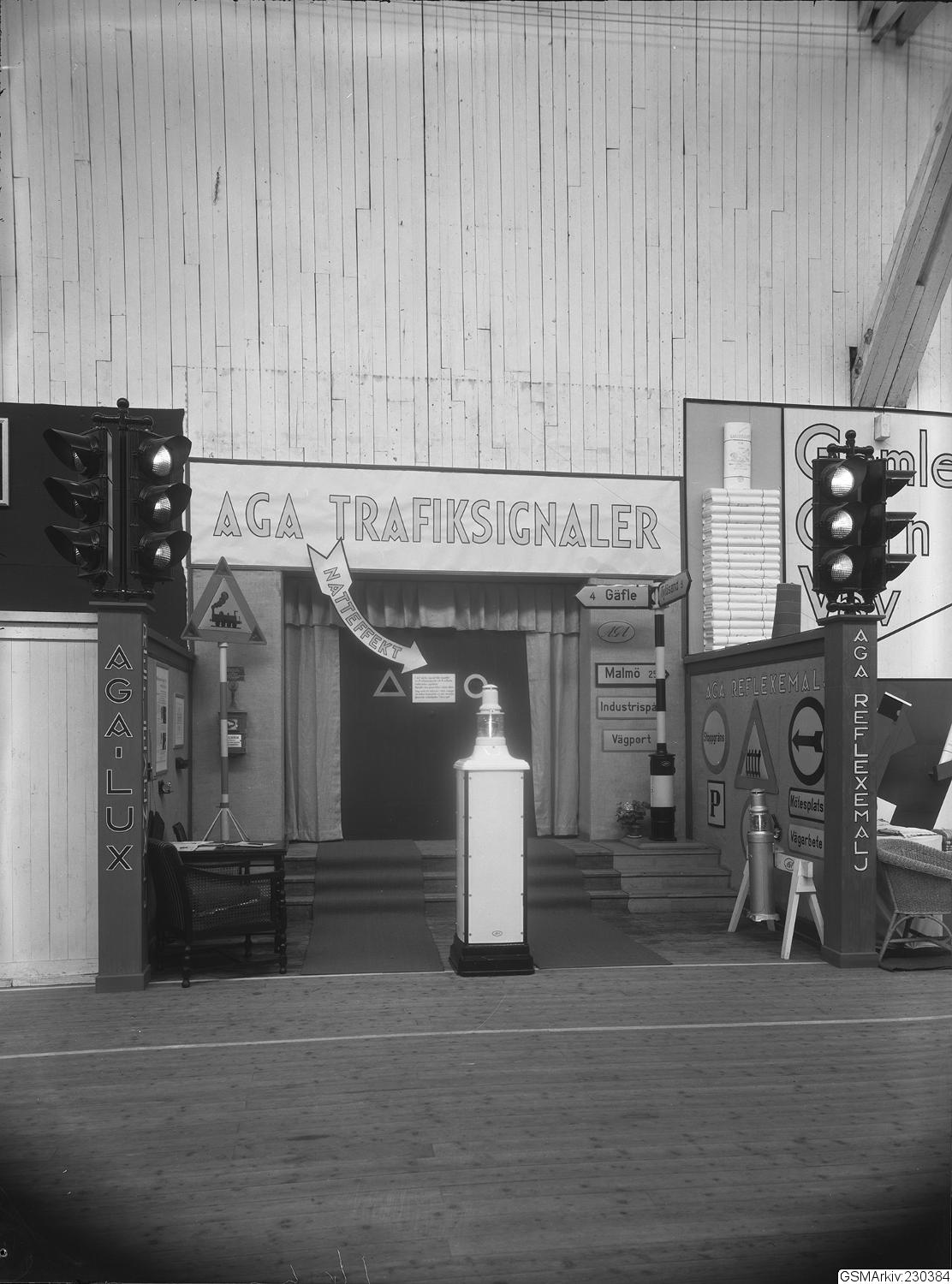 Monter på Svenska Mässan, utställare AGA trafiksignaler