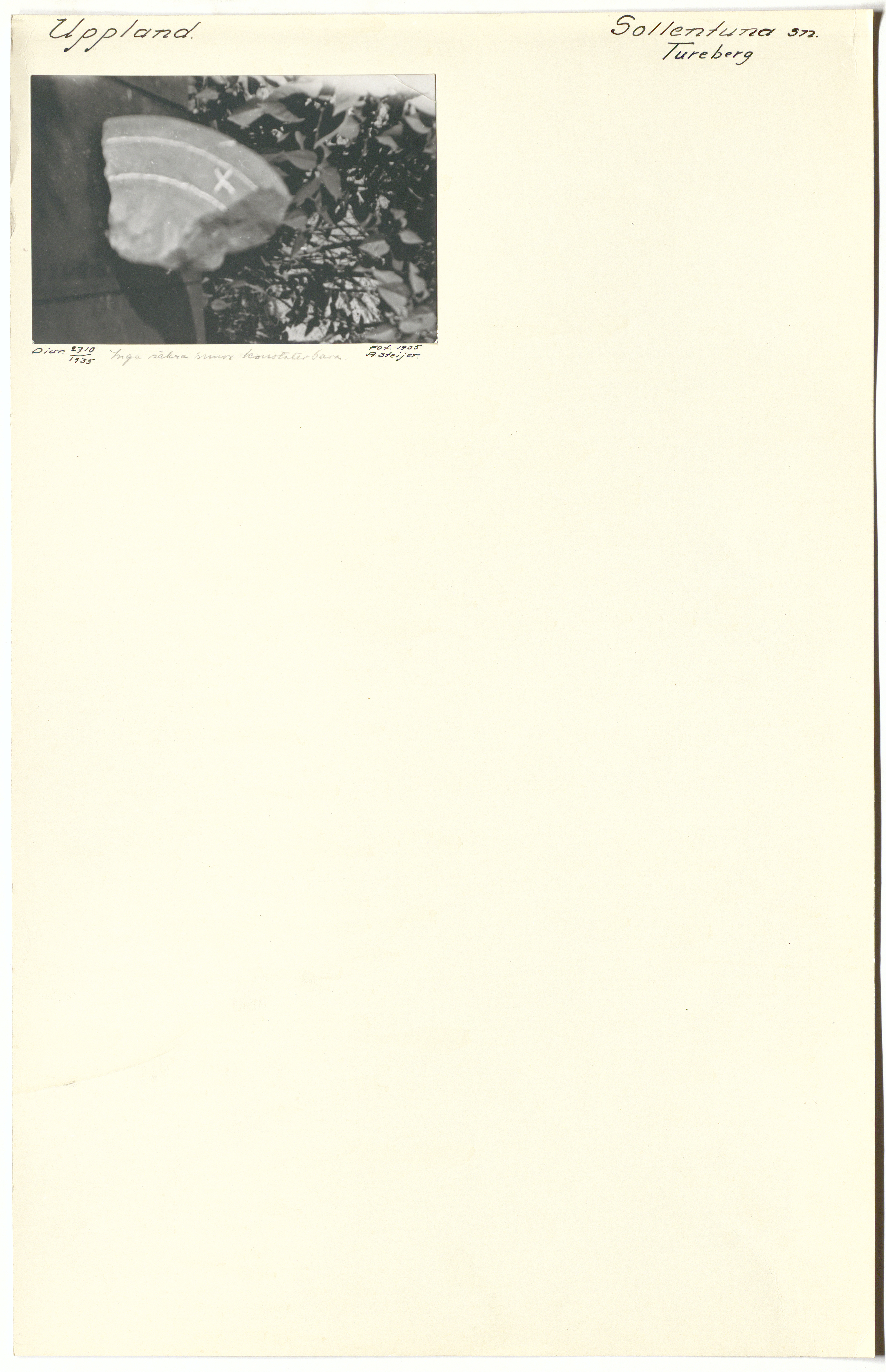Beskrivning: Bild 1: Kolla signum.. Upphov: A Steijertz (1935). Bildtext: Inga säkra runor konstaterbara. Föregiven runsten.