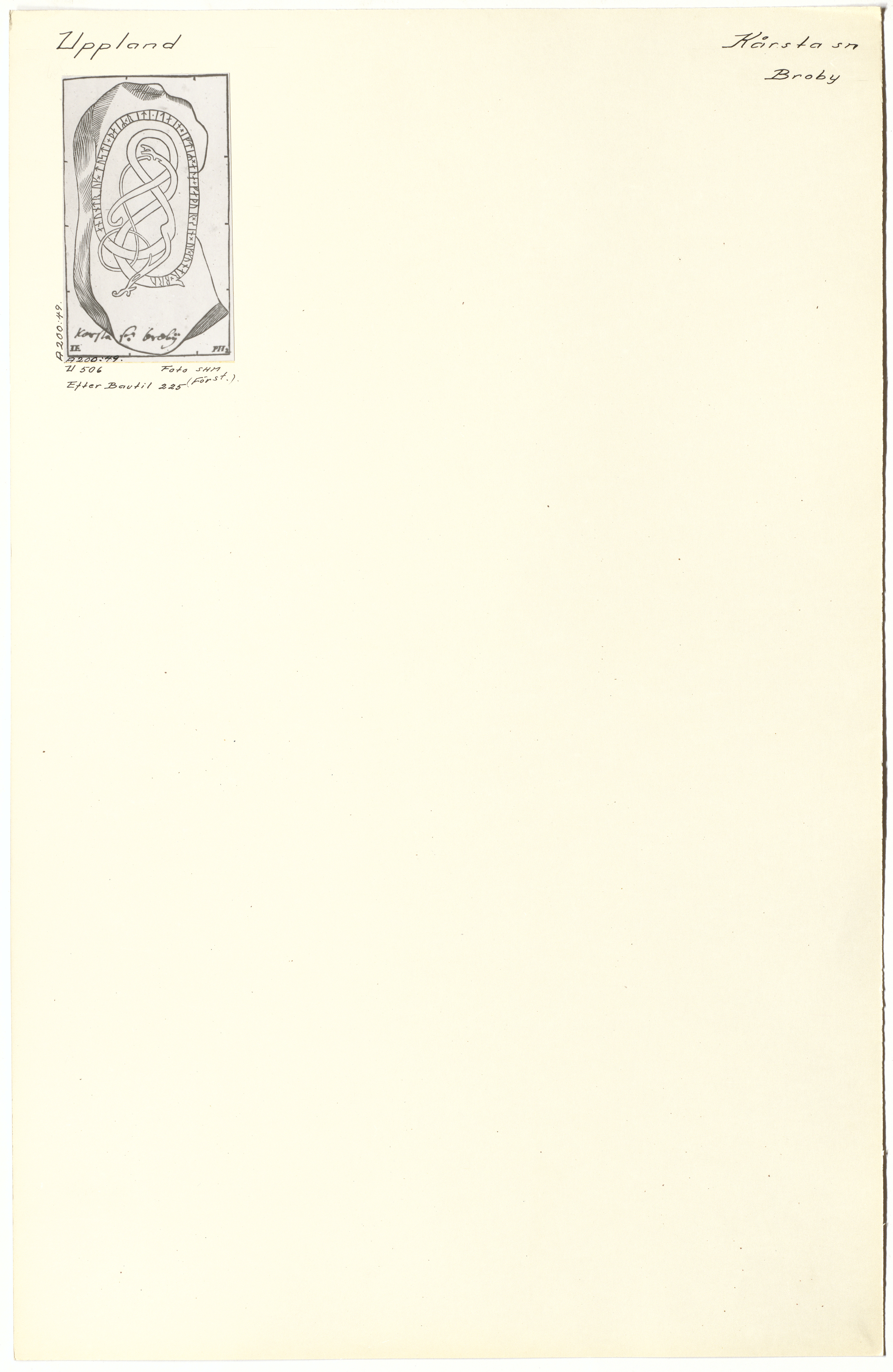 Beskrivning: Bild 1: U 506. Upphov: Petrus Helgonius; Johan Hadorph (Okänt år). Bildtext: Efter Bautil 225 (Förstoring)