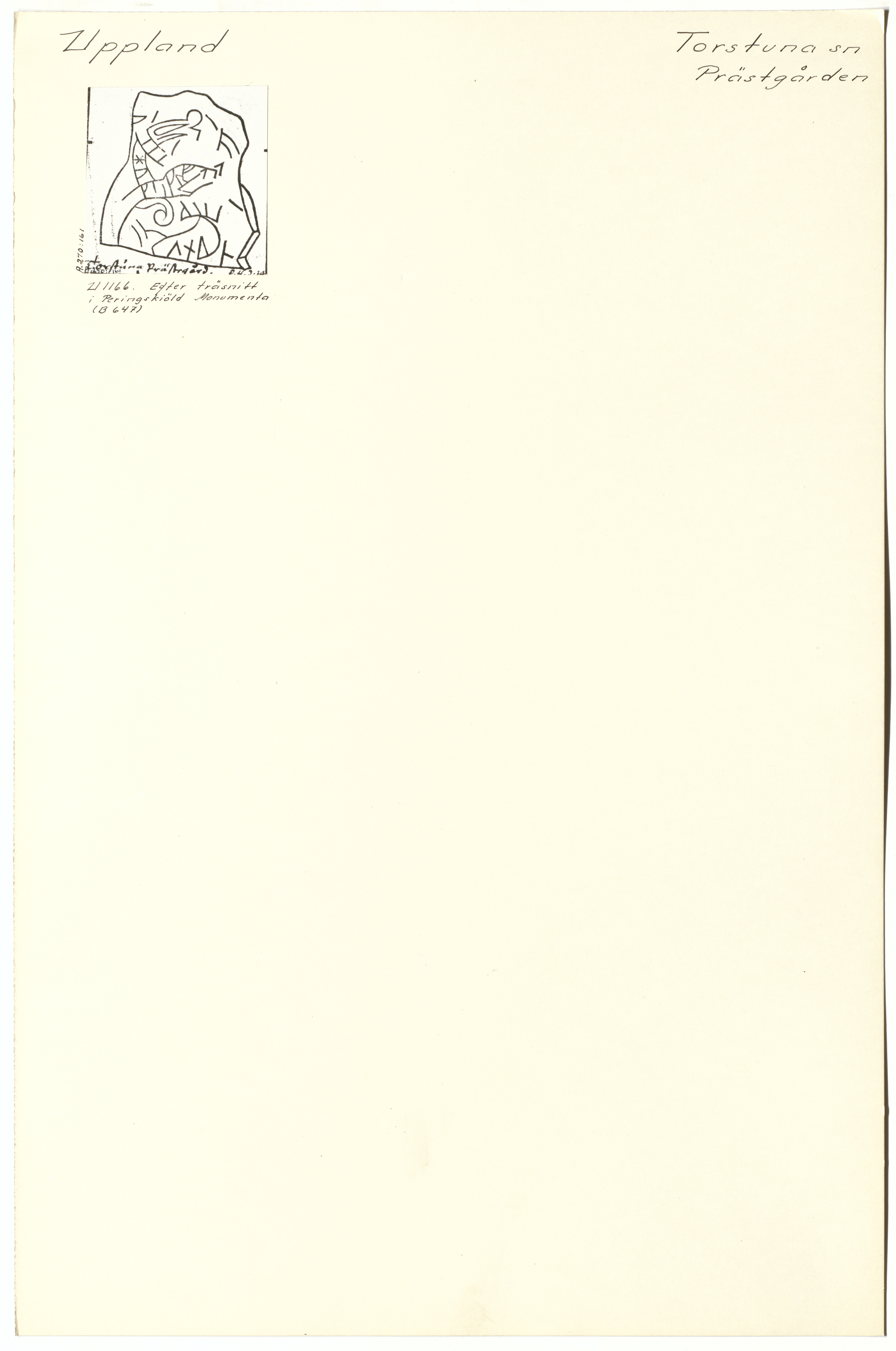 Beskrivning: Bild 1: U 1166. Upphov: Okänd (Okänt år). Bildtext: Efter osignerat träsnitt i Peringskiöld Monumenta (B 647).