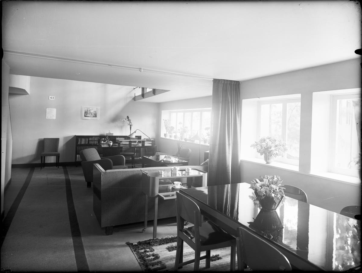 Titel: Stockholmsutställningen 1930 Vardagsrum med sittmöbel och matrumsmöbel.
